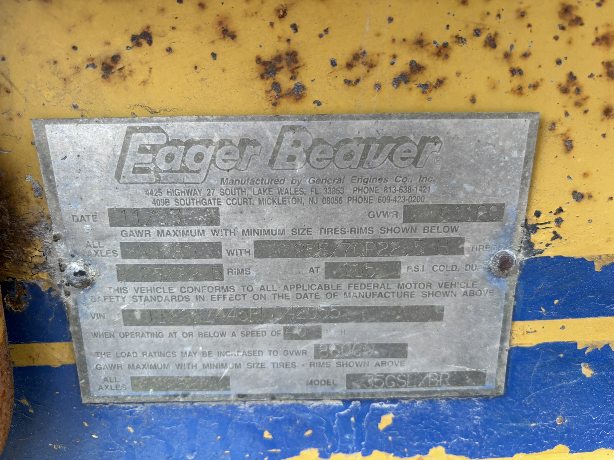 1993 Eager Beaver Trailer – VIN 112SAZ445RL042055